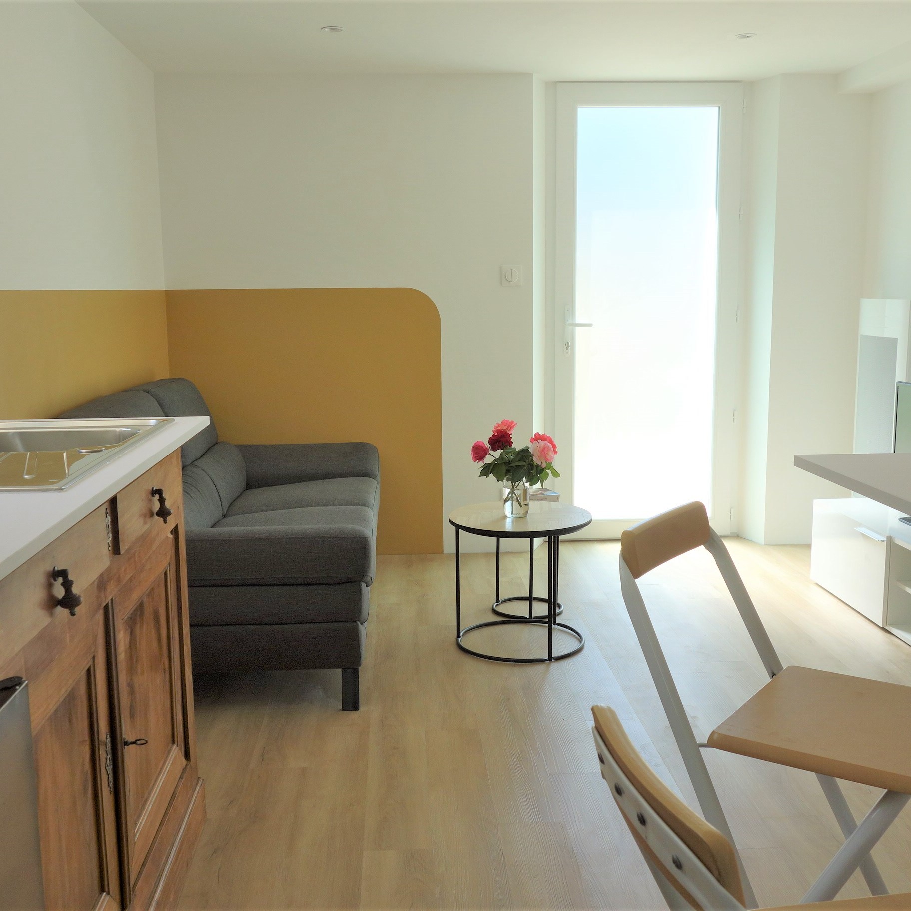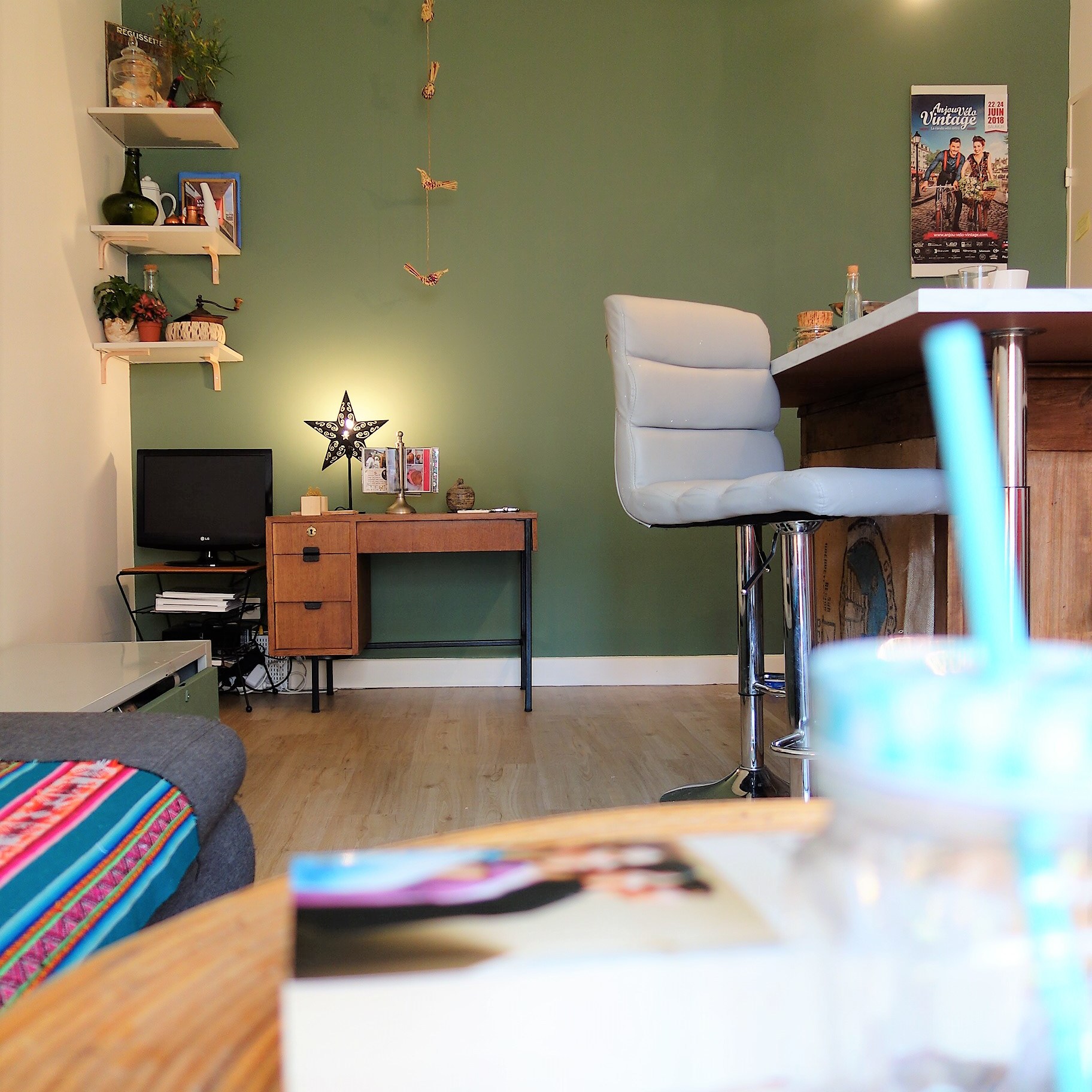 Rénovation d’un appartement dans un style jeune et scandinave, dans le but de devenir une collocation. L’idée était d’apporter un style frais et dynamique, sans qu’il soit trop marqué et risque de se démoder, afin que chaque colocataire y trouve sa place. Les chambres ont des ambiances propre à chacune, avec une tapisserie qui donne le ton. Le séjour se veut accueillant et chaleureux. Le mobilier est soit neuf, soit de seconde main. L’idée était d’apporter un style frais et dynamique. Mission réussit !
